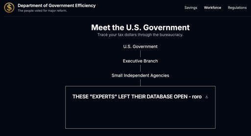 riot@slrpnk.net to Technology@beehaw.orgEnglish · 1 year agoAnyone Can Push Updates to the DOGE.gov Websitewww.404media.coexternal-linkmessage-square10linkfedilinkarrow-up1159arrow-down10file-textcross-posted to: nottheonion@lemmy.worldtechnology@lemmit.onlinetechnology@lemmy.worldnews@lemmy.world