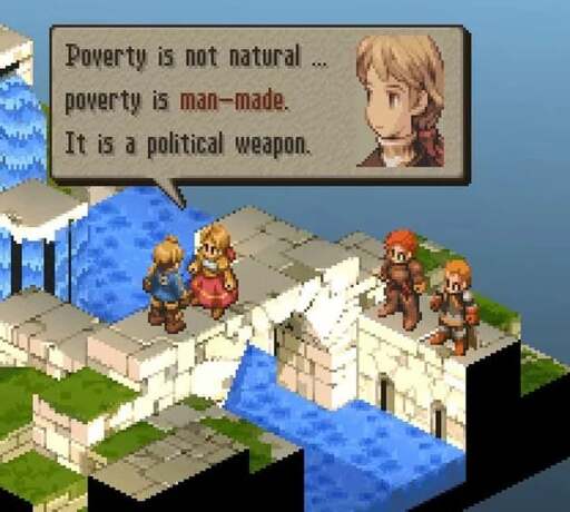 From memory, that scene has Alma and Tieta (Teta? Delita’s sister) approach the 3 young soldiers (Ramza, Delita, Algus) and Zalbaag gives some info that Ramza was looking for, waving his hand afterwards.