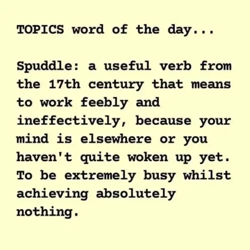 So the usage would be “I’m a bit spuddle today”? Or maybe “it’s a spuddle kind of day today” or maybe “I’m just going to have to spuddle my way through this”