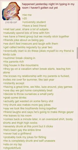 Could legitimately just be aesthetic non-sexual attraction. But this is a greentext, so…