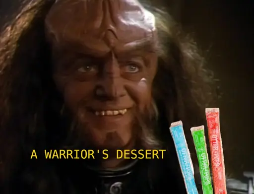 NegativeNull@lemmy.worldM to TenForward: Where Every Vulcan Knows Your Name@lemmy.worldEnglish · 6 months agoA nice treat after battlelemmy.worldimagemessage-square17linkfedilinkarrow-up1208arrow-down11