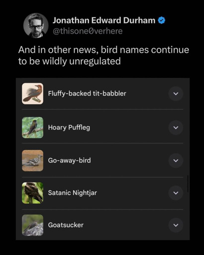 The guy in charge of inventing new slurs got transferred to the bird naming division at the word factory.