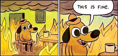 “This is fine” meme was drawn by KC Green, who created the webcomic “Gunshow” where the meme originated. https://en.wikipedia.org/wiki/Gunshow_(webcomic) It is NOT ai.