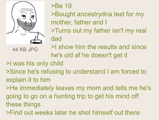 arrow-up1363arrow-down1imageAnon takes a DNA testsh.itjust.works🍹Early to RISA 🧉@sh.itjust.worksM to Greentext@sh.itjust.works · 6 days agomessage-square64linkfedilink