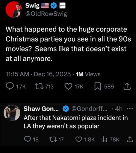 I started working at a company in the mid 80s, and stayed there for 40 years. They did Christmas parties until the f early 2000s or so. Honestly, I was kind of glad they stopped. There were always idiots getting drunk and doing/saying really stupid stuff.