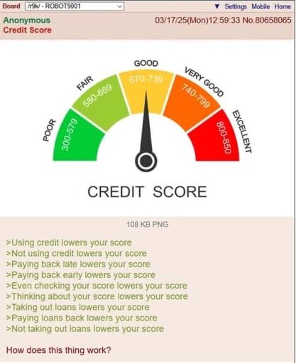 arrow-up1787arrow-down1imageAnon tries to understand credit scoressh.itjust.works🍹Early to RISA 🧉@sh.itjust.worksM to Greentext@sh.itjust.works · 2 months agomessage-square249linkfedilink