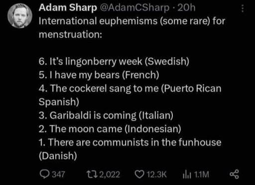 Ever since my wife and I saw this, we’ve been using “the communists are in the funhouse”. I don’t care if it wasn’t real before, it’s too good not to use it now.