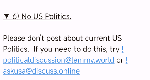 cosmicrookie@lemmy.world to Ask Lemmy@lemmy.world · edit-21 month agoRule 6?lemmy.worldimagemessage-square56linkfedilinkarrow-up1217arrow-down123file-text