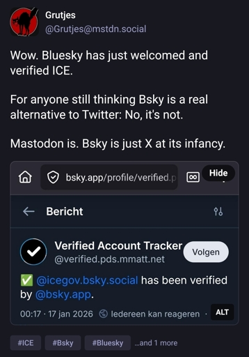 This is explicitly different from what Bluesky is doing. They are hosting known nazis. Nothing is stopping them from banning ICE and making it into a point of pride, it is really easy. There is no downside, no legitimate user hurt. It’s as easy of a decision as one can make.