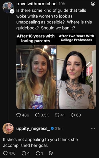 I can guarantee you repelling guys like him is absolutely a contributing factor to the decision to get tattoos and piercings. Funny how he can’t comprehend he’s the reason why.