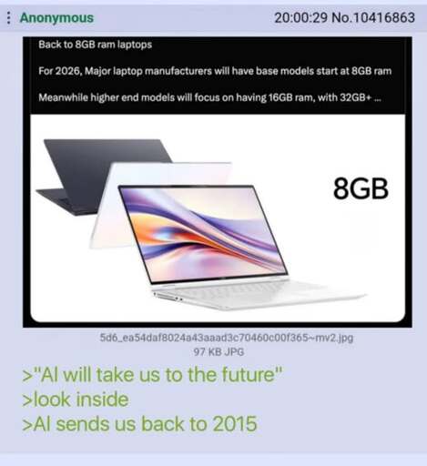 It’s crazy. It shouldn’t be allowed, and Microsoft should not approve of OEMs shipping 4gb laptops with Windows 11. But 4gb is the official minimum requirement for Win 11. What is crazy as well is that he bought it about a year ago, when RAM prices were still cheap.