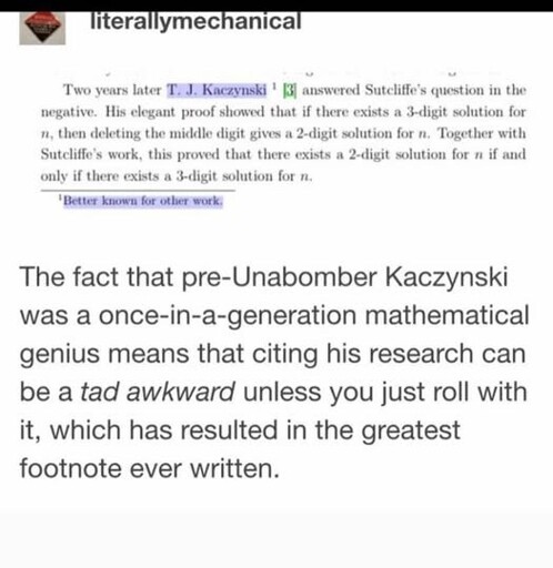 minus-squareranzispa@mander.xyzlinkfedilinkEnglisharrow-up16·13 days agoNot only genius mathematicians, we have good examples of genius biologist with Kary Mullis. Though to be fair I’d much rather live in the same city of Kary Mullis, I’d probably enjoy a beer with the guy every once in a while.
