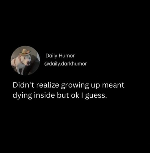 It’s not so bad, your dreams dying – you just find new dreams, and they get more manageable the longer this goes on.