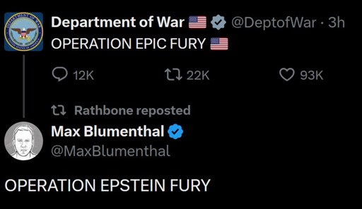 Operation Epic Fury is way more cringey that Operation Enduring Freedom. The latter sounds like it was written by a propagandist, the former sounds like it was written by a 14 year old boy.