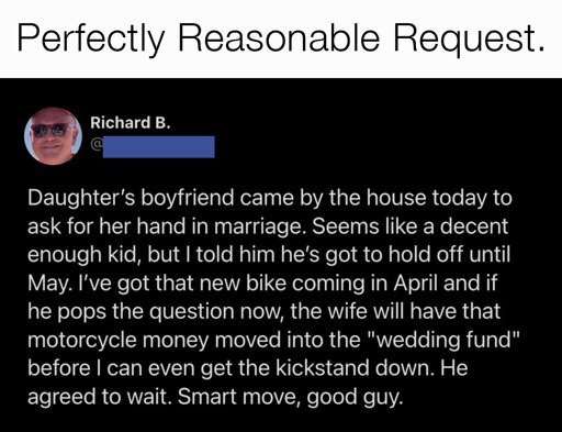 Asking a dad for permission to marry a woman is fucking disgusting and needs to go away. Women aren’t property. Children aren’t property. Fucking toxic shit.